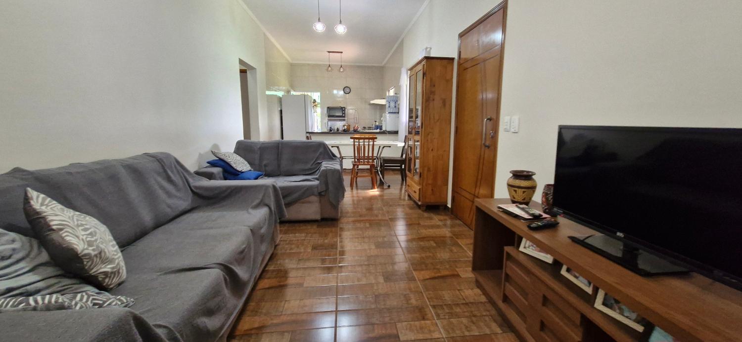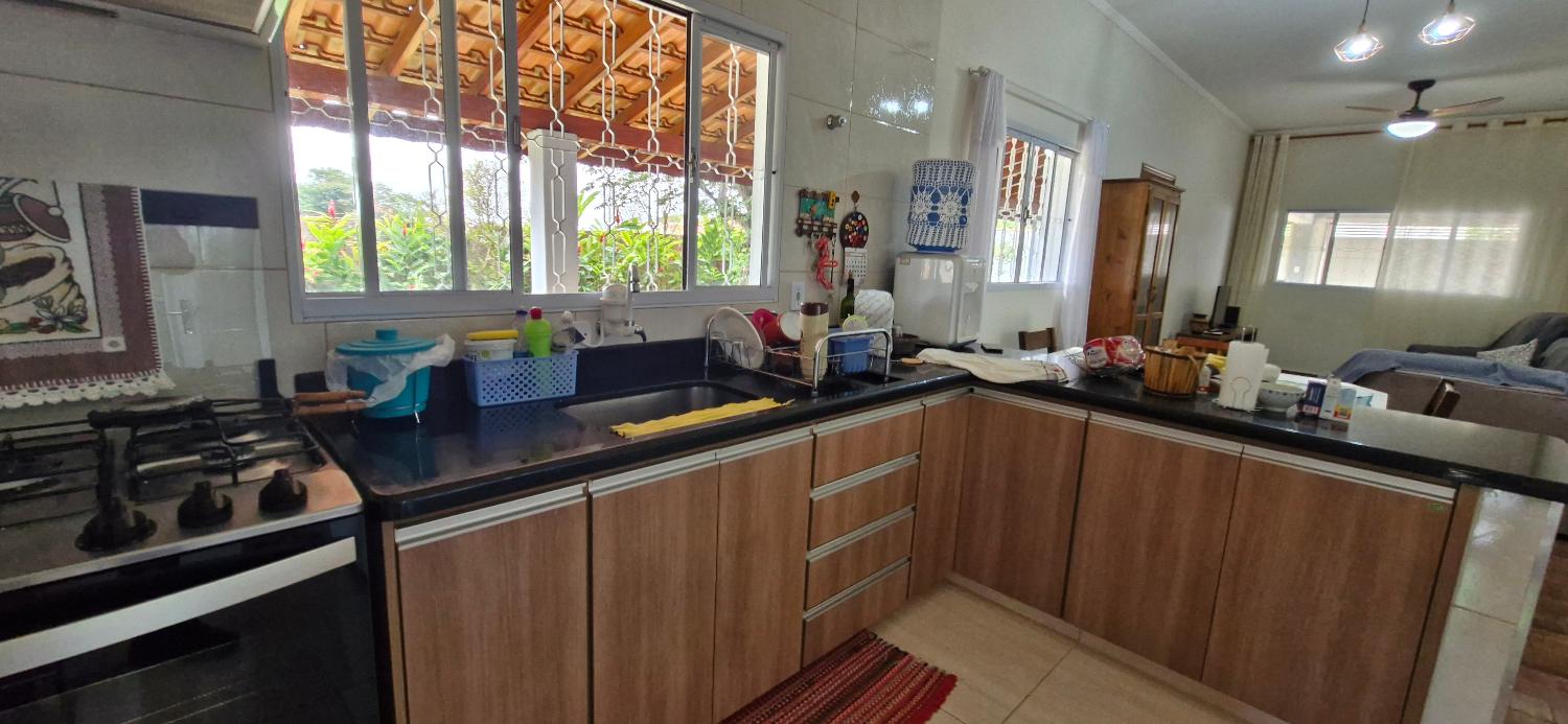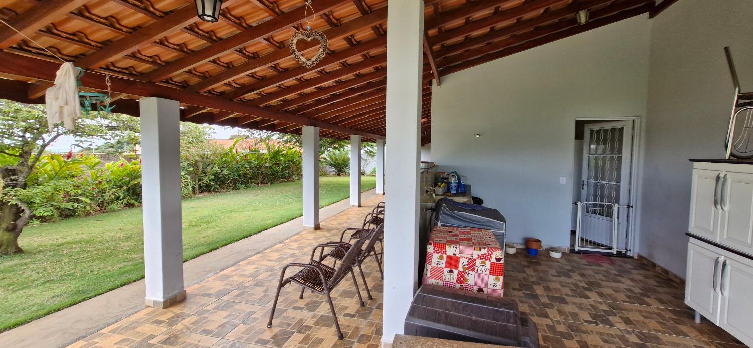 Sala, cozinha c/ balcão americano e gabinete c/ planejados, banheiro social, área de serviço coberta e espaçosa, garagem coberta para 3 ou mais veículos, poço, uma linda e espaçosa varandona que circunda boa parte da residência!